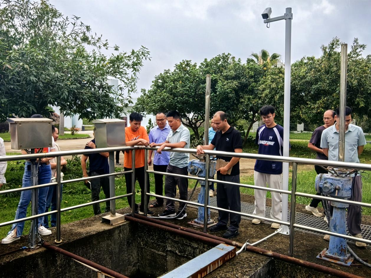(圖為:污水公司廠區(qū)進(jìn)水口講解水質(zhì)異常判斷及處置方法)