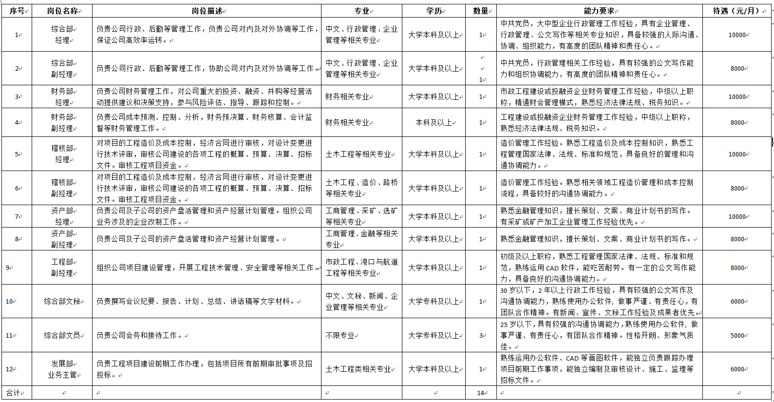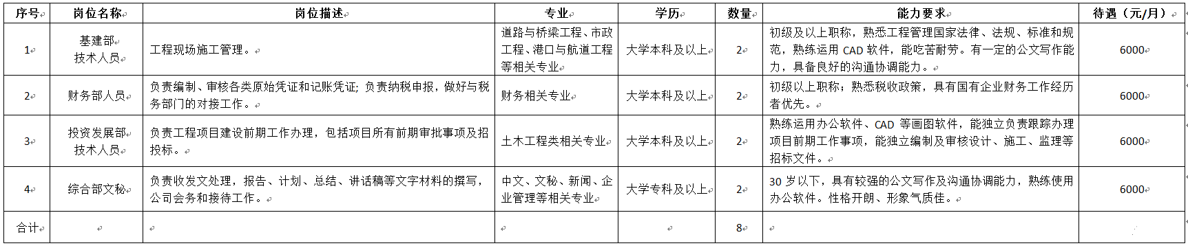 (一)北海市路港建設投資開發(fā)有限公司2022年擬招聘人才崗位信息表